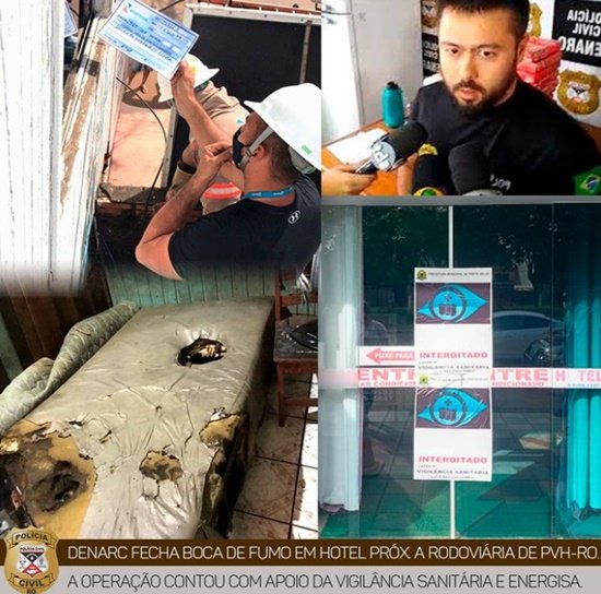 O DENARC investiga o possível comércio ilícito de drogas num hotel, localizado a Av. Jorge Teixeira. De acordo com o delegado Silvio Hiroshi, as investigações duraram meses e apresentaram indícios de que a proprietária da estalagem é suspeita de vender drogas na região.