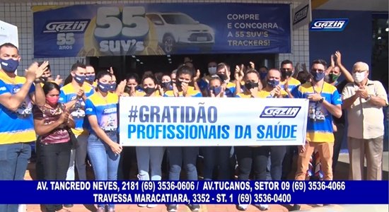 A manhã desta quarta-feira, 12/05, Dia da Enfermagem, foi marcada por uma homenagem especial da Gazin Ariquemes aos profissionais da Saúde, especialmente aqueles que estão na linha de frente do combate à COVID-19. A homenagem foi realizada por meio de um minuto de salva de palmas. Confira a matéria realizada pela equipe de reportagens do Site Ariquemes190 e Canal 35.1 Digital: