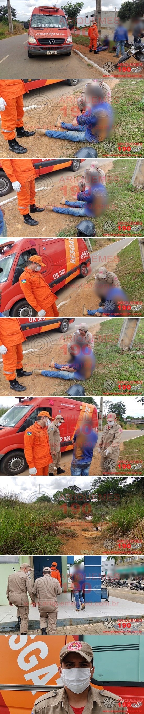 Eram por volta das 11h53m desta quarta-feira, 19/05, quando a Central do Corpo de Bombeiros Militar do Estado de Rondônia (CBMRO) foi acionada a se deslocar na Av. Diamantes do Bairro Nova União I em Ariquemes/RO, pois teria ocorrido um acidente de trânsito. Rapidamente uma equipe do Corpo de Bombeiros, composta pelos socorristas: SD Delfino, SD Manganaro e SD Streit se deslocou até ao local, onde ao chegar, visualizou um homem sentado às margens da via, que apresentava escoriações pelo corpo e se queixava de dores na região do membro superior. De pronto os socorristas iniciaram os procedimentos de primeiros socorros à vítima, a qual deu entrada a Unidade de Resgate (UR) deambulando e posteriormente foi conduzida à Unidade de Pronto Atendimento (UPA), para ser avaliada pela equipe médica de plantão. Informações passadas à equipe de reportagens da TV do Povo Canal 35.1 e Site Ariquemes 190, dão conta que a vítima ao sair de um estabelecimento comercial, conduzindo sua motocicleta, e ao adentrar a Av. Diamantes, houve a colisão com outra moto na via.