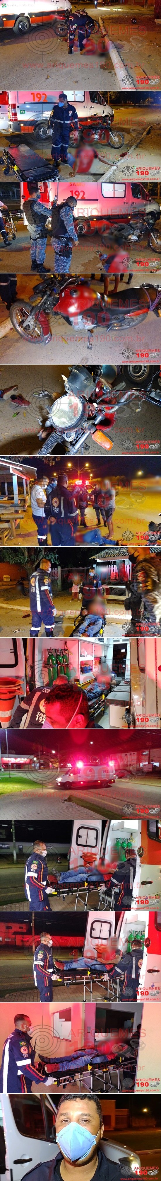 As Centrais do Serviço de Atendimento Móvel de Urgência (SAMU) e de Operações da Polícia Militar foram acionadas, para comparecerem na Av. Machadinho em Ariquemes/RO, pois teria ocorrido um acidente de trânsito neste domingo, 30/05. Rapidamente uma equipe do SAMU, composta pelos socorristas: Enfermeiro Rogildo e Condutor Ailton, juntamente com uma guarnição da Polícia Militar denominada PATAMO, composta pelos policiais: Sgt. Fabiano, SD Cunha e SD Marcos Santos se deslocaram até o local, onde ao chegarem, visualizaram um homem desorientado caído ao solo da via, o qual apresentava escoriações leves escoriações pelo corpo, onde a motocicleta Honda/Fan estava sobre seus membros inferiores.Imediatamente os socorristas iniciaram o Atendimento Pré-Hospitalar (APH) à vítima, a qual foi encaminhada em maca até a Unidade de Suporte Básico (USB). Após os procedimentos de primeiros socorros realizados ao homem, este foi conduzido para Unidade de Pronto Atendimento (UPA), para ser avaliado pela equipe médica de plantão. Ao conceder entrevista à equipe de reportagens do Site Ariquemes190 e Canal 35.1 Digital, Enfermeiro Rogildo relatou que aparentemente a vítima estava embriagada. Informações passadas à equipe de reportagens dão conta que a vítima trafegava na motocicleta juntamente com um passageiro pela Av. Machadinho, momento em que houve a perda do controle da direção, vindo a colidir contra o meio fio da via, ocasionando a queda das vítimas ao solo. O passageiro nada sofreu. O Boletim de Ocorrência Policial (BOP) foi registrado, para tomada de providências cabíveis.