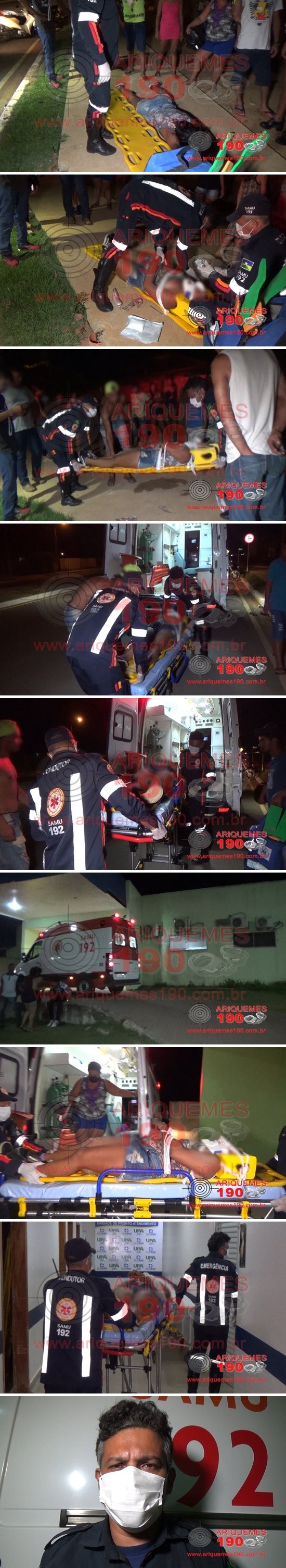 Já eram quase 22 horas quando a Central do Serviço de Atendimento Móvel de Urgência (SAMU) foi acionada via número funcional a deslocar sua Unidade de Resgate na Av. Hugo Frey, próximo ao Jardim Feliz Cidade em Ariquemes, pois ali teria ocorrido um acidente de trânsito e uma mulher estaria caída ao solo. Rapidamente os socorristas Técnico em Enfermagem Genner e Condutor Adjalmo, se deslocaram ao local indicado, onde ali chegando já visualizaram a vítima, uma mulher, caída ao solo em decúbito ventral (barriga para baixo), a qual apresentava diversas escoriações pelo corpo. Os procedimentos pré-hospitalares foram iniciados, onde a vítima apresentava-se bastante chorosa e agitada. Com brevidade os socorristas se deslocaram ao Pronto Socorro da Unidade de Pronto Atendimento (UPA), onde a mulher foi entregue à equipe médica de plantão para avaliação. Ao conceder entrevista à equipe de reportagens do Site Ariquemes190 e Canal 35.1 Digital, Técnico Genner relatou que a frequente agitação da vítima poderia sugerir a possibilidade da existência de um TCE (Traumatismo Craniano Encefálico), sendo que, a confirmação dessa lesão se dá após a avaliação através de exames específicos. Populares narraram à equipe de reportagens do site Ariqueme190 e Canal 35 que a jovem trafegava a via em sua motocicleta, momento em que colidiu com o canteiro central da rotatória. Com a força do impacto, a vítima foi lançada para o outro lado da rotatória, onde permaneceu até a chegada do socorro.