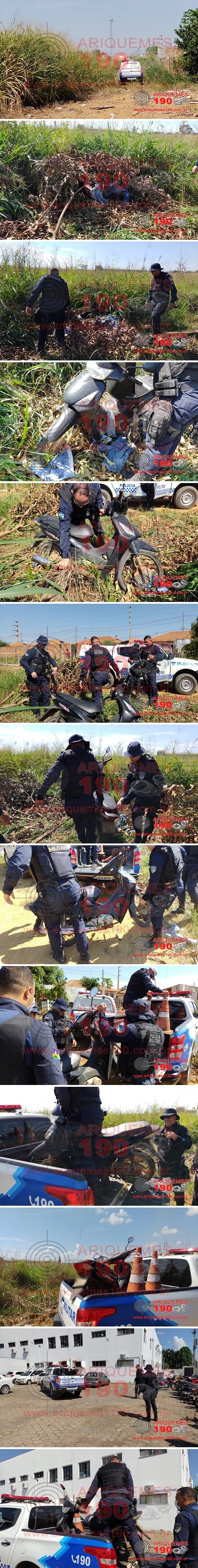 ARIQUEMES: PM localiza motoneta com restrição de Roubo/Furto em matagal no Feliz Cidade
