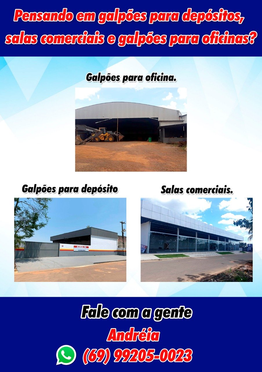 Se você é um empreendedor e deseja implementar um negócio, não perca essa excelente oportunidade de reservar um excelente local para a sua empresa, seja ela oficina, depósito ou salas comerciais. Para entrar em contato e adquirir mais informações, ligue para o telefone: (69) 9 9205-0023 e fale com a Andréia e faça um bom negócio.
