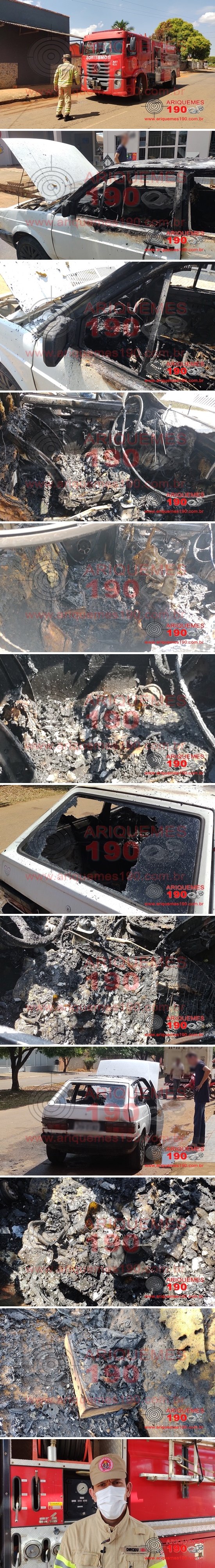 Um incêndio a um automóvel estacionado em via pública no Bairro Parque das Gemas em Ariquemes pode ter sido criminoso. O fato ocorreu no fim da manhã dessa terça-feira, 27/07, quando a Central do Corpo de Bombeiros foi acionada a deslocar na Av. Diamantes nesse Bairro, em frente a um estabelecimento comercial, pois um veículo estaria pegando fogo. Com brevidade a equipe de combatentes composta pelos Bombeiros: Sgt. Dirceu, Sgt. Gleisson e Al. CB Streit se deslocaram ao endereço, onde ali chegando constataram a veracidade da informação, encontrando o veículo VW/Gol 1000 de cor branco, ano 1995, que estava com seu interior totalmente destruído pelo fogo, contudo moradores da localidade já haviam extinguido as chamas por completo. Populares que estavam no local no momento do fato informaram à equipe de reportagens do Site Ariquemes190 e Canal 35.1 Digital, que um homem em uma motocicleta se aproximou do veículo e lançou em seu interior uma garrafa contendo um líquido e um pavio em chamas, artefato conhecido como Coquetel Molotov (mistura líquida inflamável e perigosa ao ser transportada, como petróleo, gasolina, ácido sulfúrico, clorato de potássio, álcool e éter etílico, misturados no interior de uma garrafa de vidro, e pano embebido do mesmo combustível na mistura dum pavio.), fugindo em seguida por rumo ignorado. No interior do carro foi possível identificar restos da garrafa que foi lançada para incendiar o mesmo. Ao conceder entrevista, BM Sgt. Dirceu relatou que incêndios em interiores de veículos tende a propagar muito rapidamente, sendo na maioria das vezes inevitável a perda. O carro teve perda total, contudo, o que mais chamou a atenção dessa reportagem foi uma Bíblia, que estava no banco traseiro do veículo, que apenas queimou a capa. A Polícia investiga o caso.