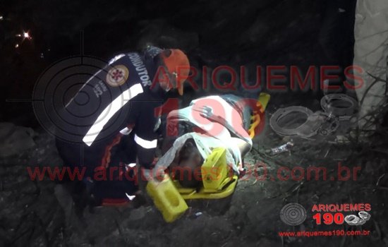 As unidades de resgate do Serviço de Atendimento Móvel de Urgência (SAMU) e a Polícia Rodoviária Federal (PRF) foram acionadas a comparecerem na BR-364 sentido Jaru, ha aproximadamente 10 km de Ariquemes, para atender uma ocorrência de acidente de trânsito. Ao chegarem no local, os socorristas se depararam com uma mulher e um homem, muito feridos com suspeitas de fraturas, caídos em uma ribanceira de aproximadamente 15 metros. Foi apurado que o condutor da motocicleta seguia sentido Ariquemes, quando perdeu o controle da direção da moto e caiu na ribanceira, local com muitas pedras, destruindo a moto. Os socorristas tiveram muito trabalho para imobilizar e retirar as vítimas, as quais foram levadas para a Unidade de Pronto Atendimento (UPA), onde foram avaliadas pela equipe médica de plantão. As equipes de reportagens do Site Ariquemes190 e do Canal 35.1 (Bronca da Pesada) acompanharam o resgate. Confira o vídeo.