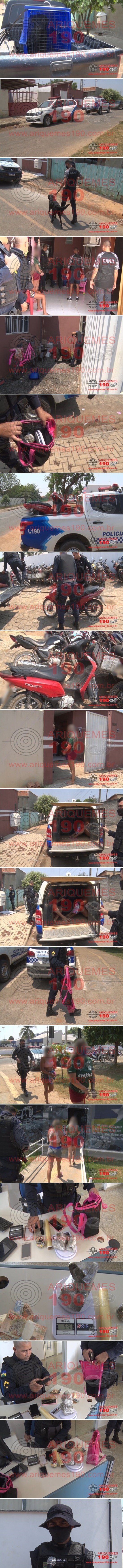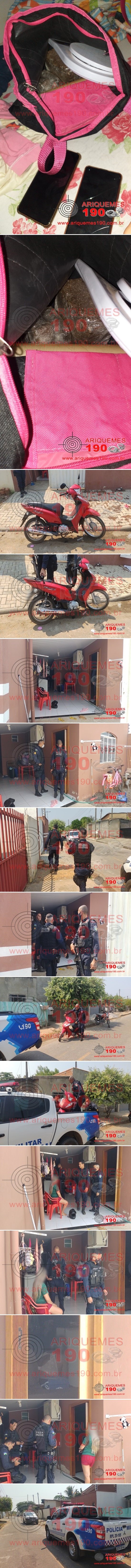 Em mais um bote certeiro, a Polícia Militar fechou uma boca de fumo localizada na Rua Euclides da Cunha, Setor 06 em Ariquemes. Há vários dias que a Polícia recebe denúncias através do seu número funcional (190), dando conta que no local funcionaria a boca de fumo da Tainá, e que a mesma estaria utilizando uma motoneta Honda Biz de cor vermelha, que estaria adulterada. Outra informação era que a casa estaria cheia de câmeras para monitorar o local. Durante patrulhamento pela Avenida Machadinho na manhã desta terça-feira, 10/08, por volta das 9h30m, a guarnição da Polícia Militar denominada Patrulha Delta, composta pelos policiais: CB Soares, SD J. Inácio e SD Machado, avistaram duas mulheres no sentido contrário, as quais estariam na referida motoneta, parando na frente e entrando na residência. Devido as denúncias, os PMs pararam em frente a casa e mantiveram contato com Tainá e a outra mulher, que já havia sido detida pelo crime de Tráfico de Drogas tempos atrás. Tainá disse ser proprietária da residência e também do veículo, sendo constatada que a moto era adulterada. Foi questionado se na casa havia algo de elícito, contudo a proprietária negou, mas ficou muito nervosa. Devido à denúncia de que o local estaria sendo utilizado para o comércio ilícito de entorpecente, os policiais, com apoio da Patrulha P-Tran, solicitaram autorização para entrar na casa com a autorização de Tainá. Já no interior da sala, foi percebido que de um dos quartos exalava um forte odor proveniente de droga do tipo Maconha e durante a verificação em tal cômodo, foram localizados 04 tabletes do entorpecente e materiais utilizados para embalar o mesmo. O Canil do 7° BPM foi acionado para auxiliar nas buscas, mas nada mais foi localizado. A Polícia Técnica compareceu na casa para realização dos trabalhos periciais, onde logo em seguida as duas mulheres, juntamente com a substância ilícita foram apresentadas na Unidade de Segurança Pública (UNISP), para registro do Boletim de Ocorrência Policial sob n° 117.930/2021, para tomada de providências cabíveis por parte da autoridade policial.