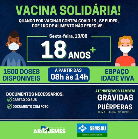 Quando for vacinar contra covid-19, se puder, doe 1kg de alimento não perecível.