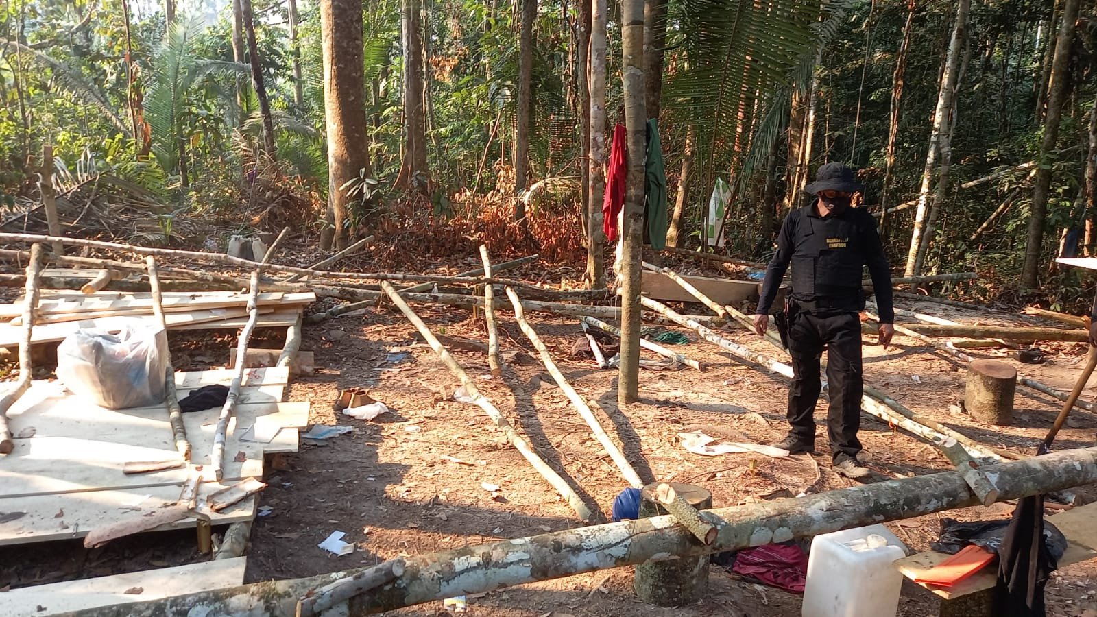 A Polícia Federal recebeu informações do ICMbio de que quatro pessoas estariam desmatando a área da Reserva Rio Ouro Preto à corte raso. As informações foram confirmadas pelos sistemas da PF deram conta que uma área de aproximadamente 100 hectares foi desmatada em curto espaço de tempo. Diante da constatação, equipes da Polícia Federal, Polícia Civil, ICMbio, na manhã de hoje (18/08/2021), se dirigiram ao local e apreenderam vários pertences dos envolvidos, munições de calibre .12, além de petrechos utilizados no corte das árvores.