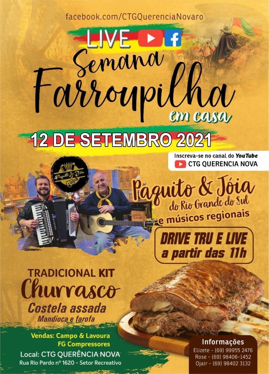 Ctg Querencia Nova convida você e sua família para junto conosco aproveitar mesmo que de longe a maravilhosa LIVE da Semana Farroupilha.