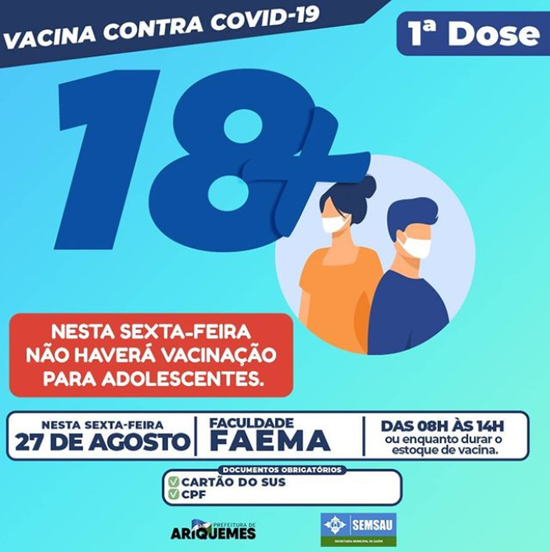 Nesta sexta-feira não haverá vacinação para adolescentes.