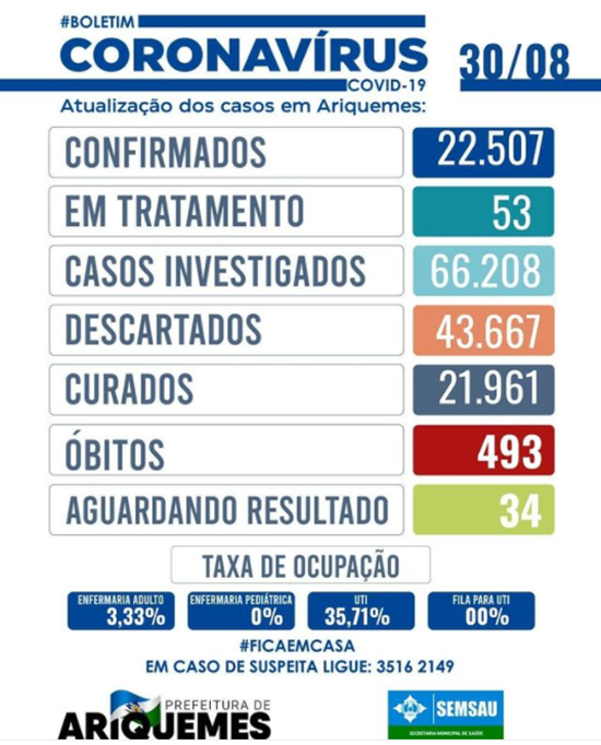 Até fechamento deste boletim, não houve registro de pacientes à espera por um leito de UTI em Ariquemes.