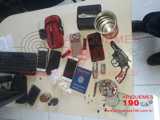 O flagrante ocorreu após uma denúncia, na qual indicava que havia ocorrido disparo de arma de fogo e que uma pessoa estava pedindo socorro. No local, os policiais militares de Monte Negro observaram um movimento suspeito, um homem ao perceber a presença da Polícia correu para fundos da residência e lançou uma sacola para o quintal do vizinho.