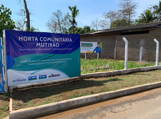 Proporcionando o desenvolvimento sustentável, acolhimento e fomento da agricultura família, a Águas de Ariquemes revitalizou uma área de 800m² no bairro Mutirão para construção de uma horta comunitária. A iniciativa busca promover a educação ambiental utilizando como base a agroecologia, horticultura, fruticultura, para o cultivo de alimentos saudáveis sem aplicação de agrotóxico, a horta atenderá famílias carentes do bairro e entornos.