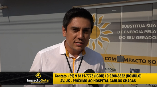 A Impacto Solar está com equipe completa para lhe atender, tirando todas as dúvidas sobre energia solar, propondo os melhores planos de pagamento. Ao conceder entrevista à equipe de reportagens do Site Ariquemes190 e Canal 35.1 Digital, o Diretor da Impacto Solar de Ariquemes, Igor Oliveira, explicou como está fácil adquirir sua usina solar, e as vantagens de utilizar a energia solar em sua residência ou empresa e finalizou com um convite para você estar fazendo uma visita ao escritório da Impacto Solar. A loja está localizada na Avenida JK, próximo ao Hospital Carlos Chargas. Telefones: (69) 8111-7775 / (69) 9 8418-7701 / 9 9208-8822 / 9 9258-7480 / 9 9309-7053. Substitua sua conta de energia pela parcela do seu gerador com a Impacto Solar. Confira o vídeo.