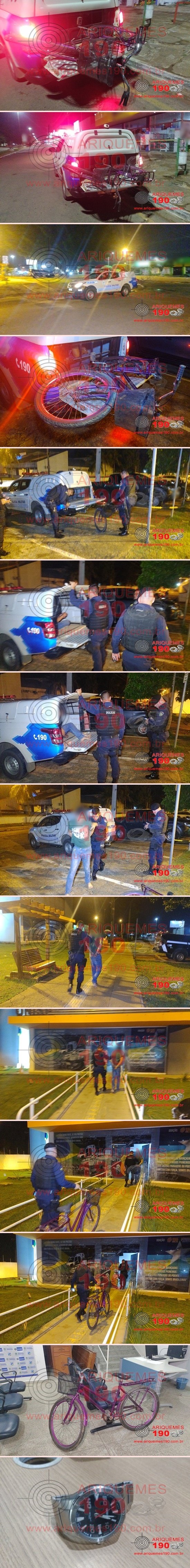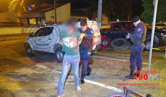 Um meliante se deu mal ao cometer um Roubo em um trailer de lanches localizado na Av. Tancredo Neves. O plano era roubar e fugir com o produto subtraído, mas o elemento não contava com a agilidade de populares, que perceberam a ação delituosa e conseguiram deter o mesmo. O crime ocorreu nos primeiros minutos de sábado, 18/09, por volta das 00h27m, momento em que a Central de Operações do 7° BPM recebeu solicitação via número funcional (190), a qual dava conta que populares teriam detido um infrator que havia acabado de cometer um roubo em um Lanche da Avenida Tancredo Neves, Bairro Institucional em Ariquemes. Rapidamente foi encaminhada ao local uma guarnição da Polícia Militar, onde ali chegando, os policiais constataram a veracidade da denúncia, encontrando um homem que estava sendo segurado por populares. Ao realizar contato com a vítima, proprietário do Lanche, este relatou que o infrator chegou em seu estabelecimento comercial e anunciou o Roubo, falando para todos que estavam no local ficarem quietos que ele queria somente os celulares. O infrator ainda conseguiu subtrair o relógio marca oriente de cor prata da vítima e no momento que iria empreender fuga, foi percebido pela vítima que estava sem arma de fogo. Então, a vítima pediu socorro a populares que passavam pelo local e os clientes que estavam no lanche, onde conseguiram deter o marginal. Foi realizada revista pessoal ao suspeito, o qual estava de posse do relógio da vítima, que estava dentro de sua calça jeans. O elemento apresentava uma lesão na região da boca, a qual adquiriu no momento em que tentava se desvencilhar dos populares para fugir. O marginal, que estava usando Tornozeleira Eletrônica de Monitoramento, ainda estava de posse de uma bicicleta de cor roxa modelo Gênova, que segundo populares também seria ilícita, produto de furto. Diante dos fatos o infrator e a vítima, juntamente com os objetos foram apresentados na Unidade de Segurança Pública (UNISP), para a tomada de providências cabíveis.