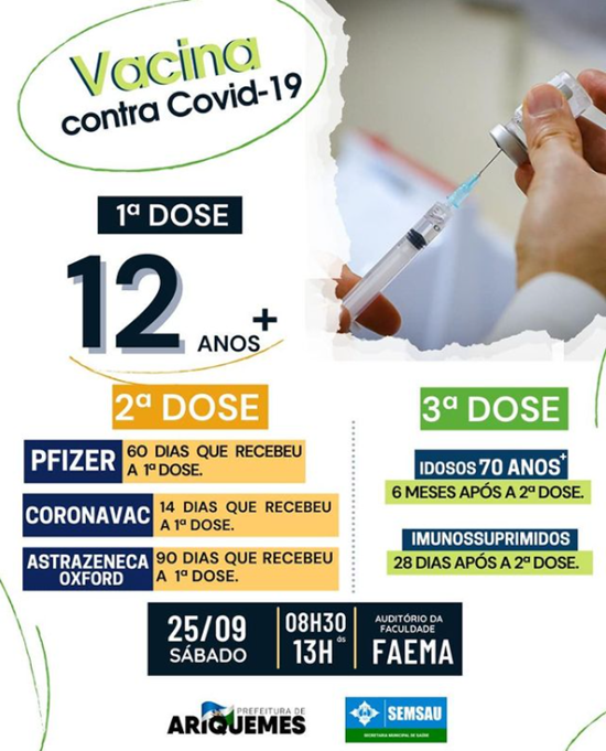 Astrazeneca/Oxford: 90 dias que recebeu a 1ª dose.