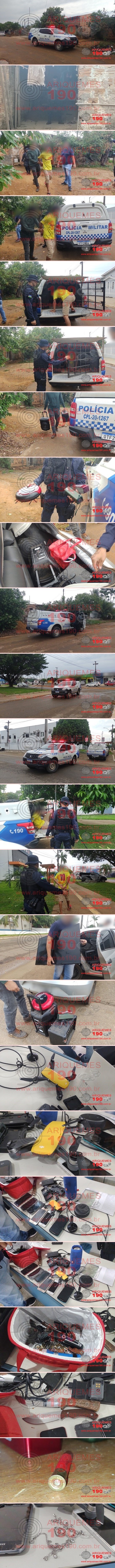Em um belíssimo trabalho do Núcleo de Inteligência da Polícia Militar, com a poio das demais guarnições em serviços, resultou na recuperação de objetos subtraídos mediante furto e na prisão de um indivíduo suspeito de estar receptar e comercializar os produtos de Roubo/Furto. O fato ocorreu na tarde desta segunda-feira, 27/09, por volta das 16h40m, quando a equipe do NI realizava investigação, onde foi constatado que nas redes sociais um homem estaria revendendo produtos de um furto, que ocorreu no dia 20/09/2021. Mediante as informações, a equipe do NI, juntamente com o poio de uma guarnição da PM, se deslocaram ao endereço localizado na 5ª Rua, Setor 10, em Ariquemes, onde o indivíduo estaria residindo e abrigando os produtos ilícitos. Ao chegarem à localidade, os policiais realizaram abordagem ao suspeito, que ao questioná-lo sobre os produtos a venda, o mesmo confessou que estaria com os objetos de um furto. Na ocasião do furto, os moradores de uma residência localizada na Rua Carimbó, Bairro Jorge Teixeira, em Ariquemes, haviam se ausentado da moradia em um fim de semana, momento que ao retornar para sua casa, se deparam com o portão fora do trilho, a janela arrombada e o interior da morada toda revidada. Ao verificar seus bens, os moradores puderam notar que faltavam alguns objetos, sendo eles: uma motoneta marca Honda, modelo Biz 125, cor branca, um televisor marca AOC, de 52 polegadas, um notebook marca ASUS, cor prata e preto, um relógio marca Chilly Beans, cor prata, um drone marca DJI, cor amarelo e preto, um aparelho celular marca Xiaomi, cor preto, três semijoias e dois cartões de débito. Ao realizarem a revista na moradia do suspeito, os PMs encontraram uma Smart TV AOC, de 52 polegadas, onde o individuo afirmou ser objeto do furto e que estaria com um notebook, sendo que seu irmão havia levado para a casa de sua genitora, para que o aparelho pudesse ser carregado. De imediato os policiais, juntamente do suspeito, se deslocaram para a residência onde estaria o notebook, com a finalidade de recuperar o objeto furtado. Ao chegarem no local, os policiais tiveram a autorização da genitora do suspeito, para que pudessem realizar busca em sua casa. Ao realizar revista no interior da residência, os policiais não tiveram êxito ao encontrar o notebook, entretanto, foi identificado um Drone Amarelo e Preto, marca DJI, o qual também havia sido furtado no mesmo local. Além desses objetos, foi encontrado também um Cartucho intacto calibre .32. Após concluir a busca na residência da mãe do suspeito, os PMs junto do individuo retornaram para a casa onde o mesmo residia, local que os policiais encontraram uma gargantilha prateada adornada com pedrinhas, sendo que o suspeito afirmou que este objeto também estava relacionado ao furto em questão. Na casa também foram encontrados diversos objetos sem nota fiscal, de procedência duvidosa, sendo eles: seis aparelhos celulares; um Iphone, quatro Samsung e um Motorola, junto de três facas de caça, uma lanterna de cor azul, uma máquina de cortar cabelo, um barbeador elétrico, um HD externo, dois relógios das marcas Dumont e Champiom, quatro caixas de som, sendo elas das marcas; JBL, Music, Transcend e Amazon e um robô de limpeza da marca Multilaser. Foram encontrados também uma chave de uma motoneta marca Honda, modelo Biz, duas caixas amplificadas da marcas Sumay e Oneal, dois pendrives, um cartão de memória e variadas joias. Mediante as informações coletadas pelos policiais, o suspeito de Receptação foi encaminhado para a Unidade de Segurança Pública (UNISP), onde ficou a disposição do Delegado de plantão, para o registro do Boletim de Ocorrência Policial, e posterior tomada de medidas cabíveis. Os bens também foram apresentados para a autoridade plantonista e ficaram a disposição para a retirada à seus proprietários.