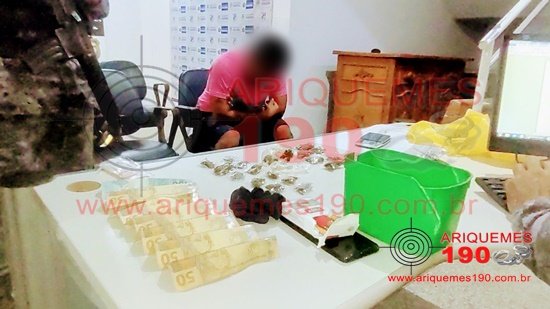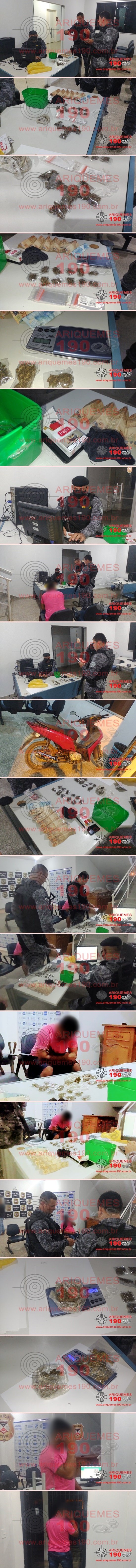 O Tráfico de Entorpecentes de qualquer espécie tem sido um mal destruidor de milhares de famílias, não só no Brasil, mas no mundo inteiro. Em Ariquemes não é diferente, onde centenas de mães vivem a luta de ter um filho, ou de ter um familiar entregue às drogas. Graças ao diligente trabalho da Polícia Militar em Ariquemes, vários elementos têm sido tirados de circulação e vários pontos de venda do produto ilícito têm sido desmantelados. Foi o que ocorreu na noite desse sábado, 02/10 por volta das 22h30m, quando a guarnição da Polícia Militar denominada PATAMO realizava patrulhamento pela Av. Candeias em Ariquemes, momento em que ao adentrar pelo Desvio da PRF, se deparou com um motociclista que trafegava na motoneta Honda Biz de cor vermelha com placa de Ariquemes/RO, o qual apresentou atitude suspeita, motivando a abordagem. De imediato o indivíduo já informou aos policiais que estava fazendo entrega de Maconha, e que consigo teria certa quantidade. Ao realizar revista, foi encontrado em uma meia sobre o banco da moto, onze porções de Maconha, sendo que o próprio elemento já foi afirmando que em sua residência teria mais droga. Os policiais se deslocaram juntamente com o mesmo até a sua residência, onde com permissão deste realizaram a retirada do restante da droga tipo Maconha de dentro da casa, a qual estava no armário dentro de uma sacola de cor amarela, sendo oito invólucros e um pedaço maior (28 gramas). Mediante as constatações, o elemento foi apresentado, juntamente com a droga (89 gramas), a motoneta, uma balança de precisão, material utilizado para embalar a droga e a quantia de R$ 400,00 (quatrocentos reais), na Unidade de Segurança Pública (UNISP), onde foi realizado o registro do Boletim de Ocorrência Policial, para tomada de medidas cabíveis.