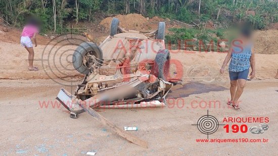 ARIQUEMES: Mulher fica gravemente ferida após capotamento na LC-65