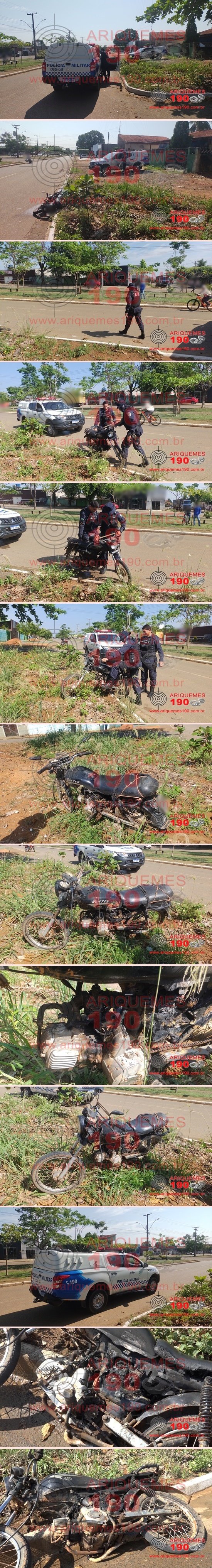 ARIQUEMES: Motocicleta fica parcialmente destruída após pegar fogo por pane elétrica na Av. Jaru