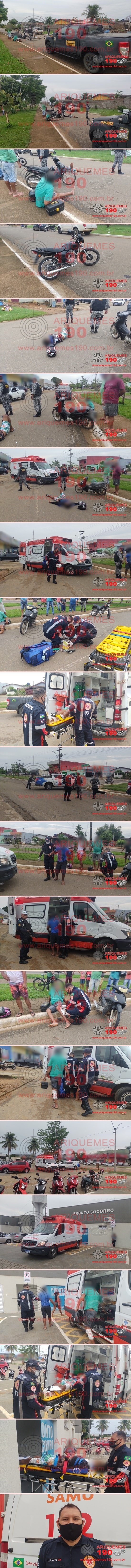ARIQUEMES: Colisão entre motos na Av. Jaru deixa três vítimas feridas