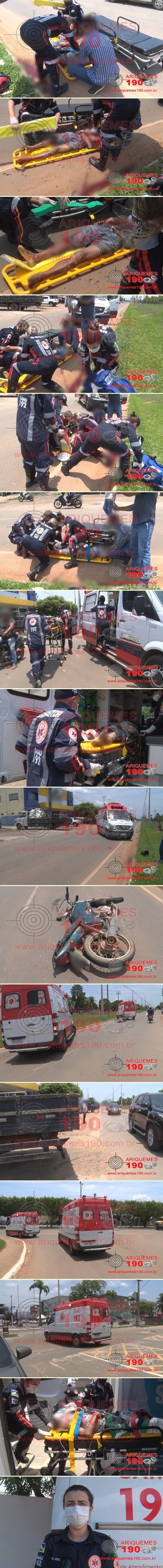 ARIQUEMES: Motociclista tem fratura exposta após grave acidente ao colidir com caminhão - Vítima teve perca de estrutura óssea