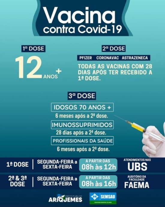 Primeira dose: 12 anos ou mais.