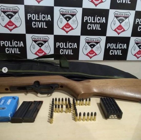 Diante das informações, o delegado representou pela prisão preventiva e pela busca e apreensão em desfavor do suspeito, sendo deferido pela justiça. Na tarde de hoje, os policiais da DEAM cumpriram a ordem judicial e prenderam J. P. A. Os agentes localizaram um rifle e farta quantia de munições, na residência do investigado.