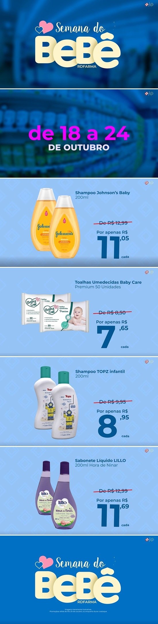 A RD Farma preparou uma super promoção para a Semana do Bebê, que iniciou nesta segunda-feira, 18/10, e encerrará neste domingo, 24/10. E pensando nos cuidados com os bebezinhos, a RD Farma está com uma mega promoções em produtos infantis, confira as ofertas: