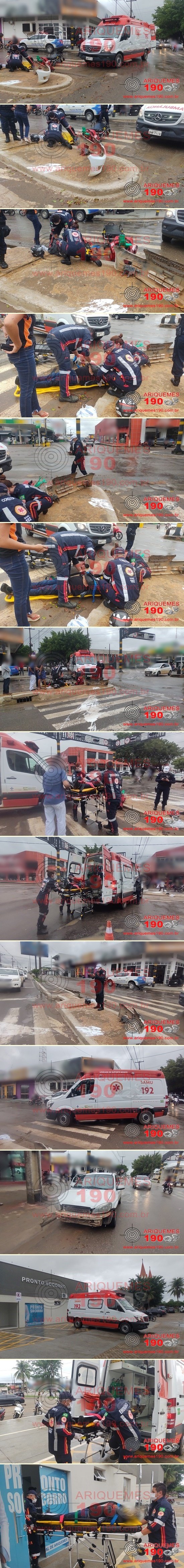 ARIQUEMES: Colisão entre carro e moto no semáforo da Av. Canaã com a Av. Candeias resulta em um motociclista ferido