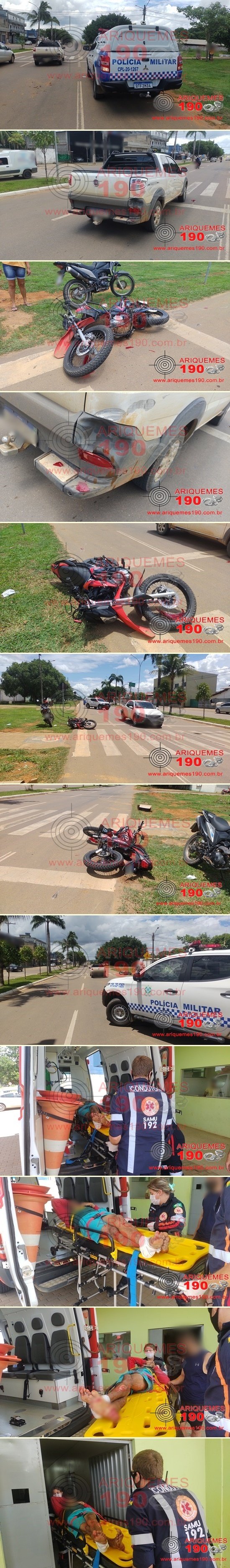 ARIQUEMES: Motociclista tem pé lesionado após se chocar contra traseira de carro na Avenida Tancredo Neves