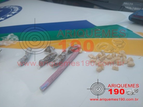 No período da tarde desta quinta-feira, 18/11, a guarnição da Polícia Militar denominada Patrulha Eco, composta pelos policiais: Sargento Rodrigues, Cabo Zanioli e Cabo Weskley, realizava patrulhamento pela Avenida JK, com a Travessa Pavão, Setor 02 em Ariquemes, acabou resultando na apreensão de drogas e registro de TCO. Já era por volta das 15 horas, quando os PMs avistaram um jovem trafegando em uma bicicleta pela Avenida, momento que ao perceber a aproximação da guarnição o rapaz se mostrou muito nervoso e tentou mudar de rota, sendo que rapidamente os policiais realizaram abordagem ao suspeito. Após revista pessoal ao jovem, foram encontrados em sua posse 06 (seis) invólucros de Maconha, 23 (vinte e três) pedras de substância de Crack, sendo que o indivíduo fazia uso de Tornozeleira Eletrônica de Monitoramento. Ao questioná-lo sobre a procedência dos ilícitos, o mesmo afirmou que era usuário de drogas e que havia comprado para seu próprio uso. Mediante a confissão, o elemento se propôs a comparecer em juízo para responder sobre o fato, onde os PMs registraram o Termo Circunstanciado de Ocorrência (TCO).