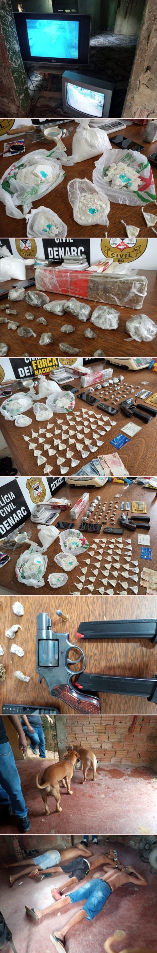 Segundo a polícia, a casa era monitorada por câmeras de segurança devido às suspeitas que existiam contra os suspeitos. Ao todo foram apreendido aproximadamente mais de 2kg de drogas entre maconha e cocaína.
