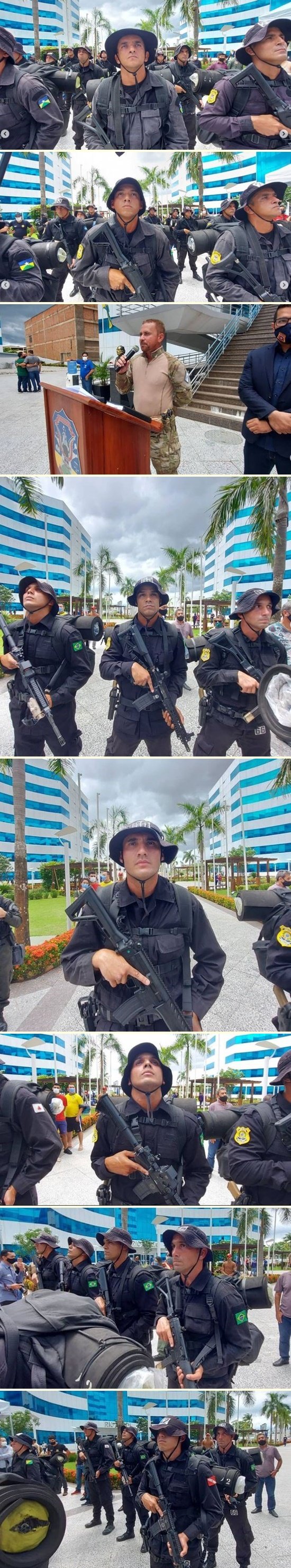 Aluno 62 Manfrin do Garras da PCMS apresenta ao Secretário de Segurança Pública do Estado Rondônia, Cel Hélio Pacha e delegada geral Adjunta da PCRO, dra Alessandra Paraguassu, os alunos do 1° Curso de Operações Táticas Especiais - COTE da PCRO pronto para a formatura.