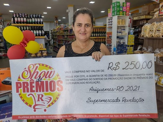 Na manhã desta sexta-feira, 03/12, foi realizado o primeiro sorteio do mês de Dezembro da Promoção Show de Prêmios do Supermercado Revelação. E os primeiros ganhadores desta super premiação foi o Helio Max da S. Monteiro, ganhou o valor de R$ 250,00, em vale compra na premiação do Supermercado Revelação do Setor 09, e Sebastiana P. Saraiva, ganhou o valor de R$ 250,00, em vale compra na premiação do Supermercado Revelação do Setor 05. Para participar das premiações basta realizar compra a cima de R$ 40,00, preencher o cupom e pronto já está concorrendo. Venha para o Supermercado Revelação, que está localizado em dois endereços: na Rua Registro, Setor 09, nº 4970, em frente à Praça; e na Avenida Guaporé, Setor 05. O lugar certo para fazer economia! Confira o vídeo.