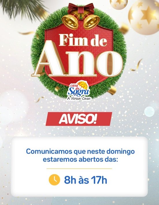 A Casa da Sogra estará aberta neste domingo, 05/12, das 8h ás 17h, com muitas promoções e condições facilitadas de pagamento. Venha você também para Casa da Sogra a nossa casa! Rua Piquiá, Centro, Setor 01. Telefone: (69) 3535-7612.