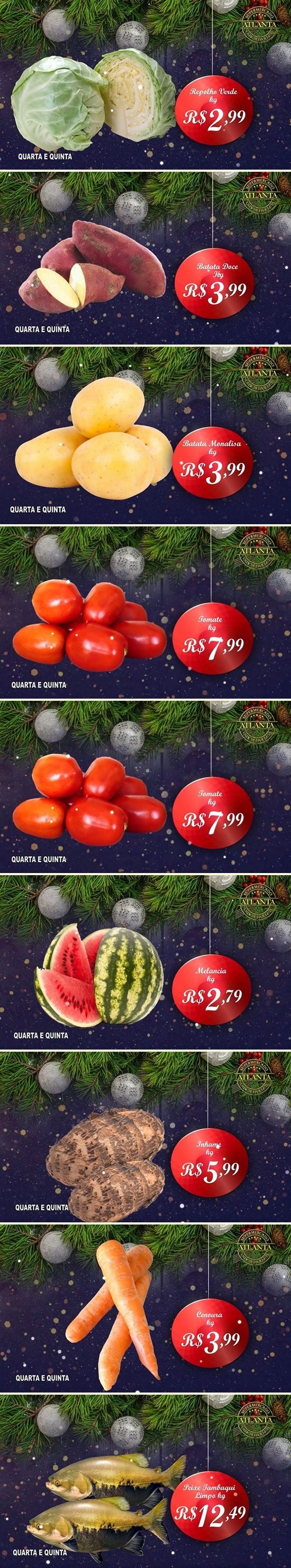 O Atlanta Supermercado sempre trazendo ofertas imperdíveis em hortifrúti, peixaria e muito mais. Confira as promoções para esta quarta-feira, 08/12, e quinta-feira, 09/12, no Atlanta Supermercado, que está localizado na Avenida Jamari, em frente à Praça da Vitória. Confira as ofertas: