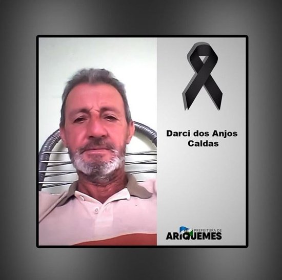 A Prefeitura de Ariquemes comunica e lamenta com profundo pesar, o falecimento do servidor público, Darci dos Anjos Caldas, 67 anos, ocorrido na noite deste domingo 12, vítima de um câncer. Darci era servidor do município há 22 anos e desempenhava sua função na Secretaria de Obras, como operador de máquinas pesadas. O velório ocorrerá nesta terça-feira 14/12, das 7h às 9h, na capela ecumênica. Neste ato, o poder executivo se solidariza com familiares e amigos enlutados.