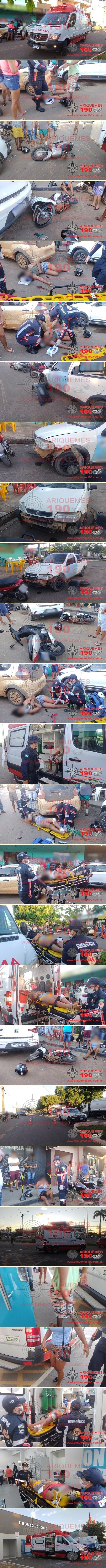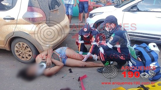 Já era por volta das 18 horas, quando a Central do Serviço de Atendimento Móvel de Urgência (SAMU), foi acionada a comparecer na Avenida Guaporé, Setor 06 em Ariquemes, para atender uma ocorrência de acidente de trânsito. De imediato foi enviada ao local uma Unidade de Suporte Básico (USB) do SAMU, onde ali chegando, os socorristas puderam visualizar 04 vítimas, sendo que um casal não apresentava nenhuma lesão aparente, um jovem sentado na margem da via com várias escoriações pelo corpo e uma mulher caída ao solo, a qual apresentava várias escoriações pelo corpo e se queixava de muita dor pelo corpo. Rapidamente os socorristas iniciaram os primeiros socorros a vítima, imobilizando-a em prancha rígida, com colar cervical, sendo em seguida encaminhada ao Hospital Municipal de Ariquemes (HMA), junto do jovem e uma mulher, a qual queixava-se de dor no tornozelo, onde ficaram sob os cuidados da equipe médica de plantão. Não se sabe como ocorreu o acidente, onde deixou avarias em duas motonetas Honda Biz e um carro. A Polícia Militar esteve no local, onde realizou o registro do Boletim de Ocorrência Policial, para serem tomadas medidas cabíveis.