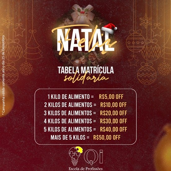Somente até o dia 25 de Dezembro, todos os Cursos Profissionalizantes da Qi - Escola de Profissões estarão com descontos Off de até R$50,00, em todas as mensalidades.