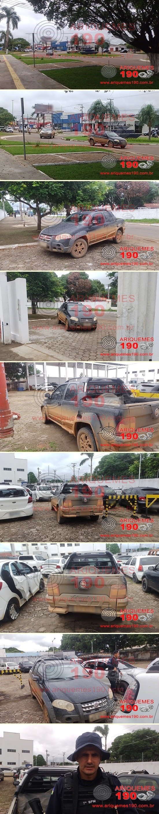 Na madruga deste sábado, 18/12, por volta das 01h30m, compareceu no Grupamento Policial da Polícia Militar do Distrito Bom Futuro, uma vítima de roubo, a qual relatou que haviam acabado de subtrair seu automóvel Fiat Strada, cor preto, com placas de Ariquemes/RO. De acordo como narra o Boletim de Ocorrência Policial, um elemento invadiu um estabelecimento tipo comercio localizado na Rua Malacacheta, Distrito Bom Futuro em Ariquemes, e rendeu a proprietária, amarrando mãos e pés da mesma, sendo que o infrator subtraiu 01 (um) notebook, 01 (um) aparelho celular, Fiat Strada e outros bens materiais. Mediante as informações, os policiais realizaram buscas pela localidade, onde não tiveram êxito em encontrar o infrator, sendo que logo pela manhã deste domingo, 19/12, por volta das 09h40m, os PMs localizaram o veículo roubado abandonado no meio do mata entre a Vila Ebesa e Chapadão. Após coleta de informação, os policiais confeccionaram o registro do Boletim de Ocorrência Policial sob nº 197630/2021, para serem tomadas medidas cabíveis e posteriormente realizada a devolução do bem para seu legítimo dono.