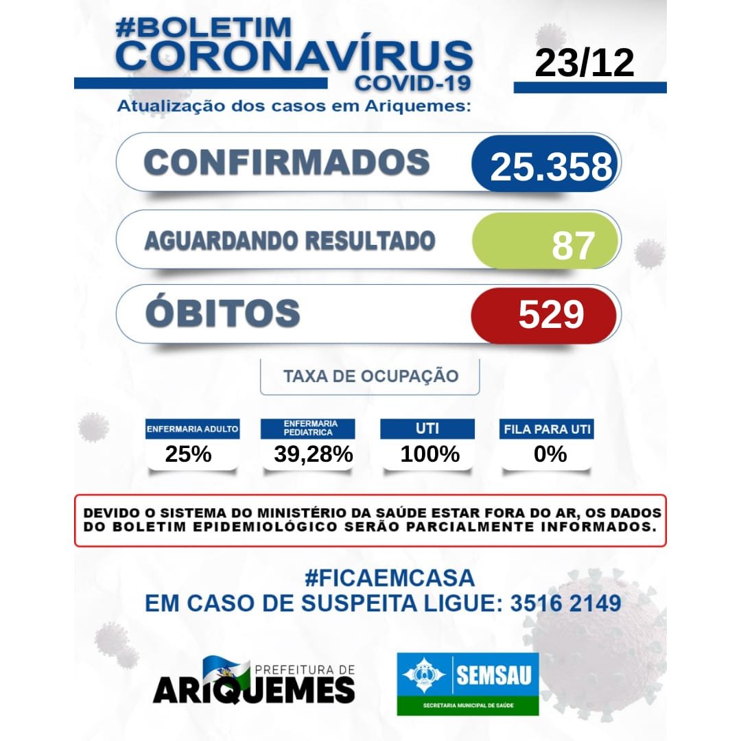 Nenhum óbito foi registrado nesta quinta-feira.id-19) de Ariquemes – Edição 602.