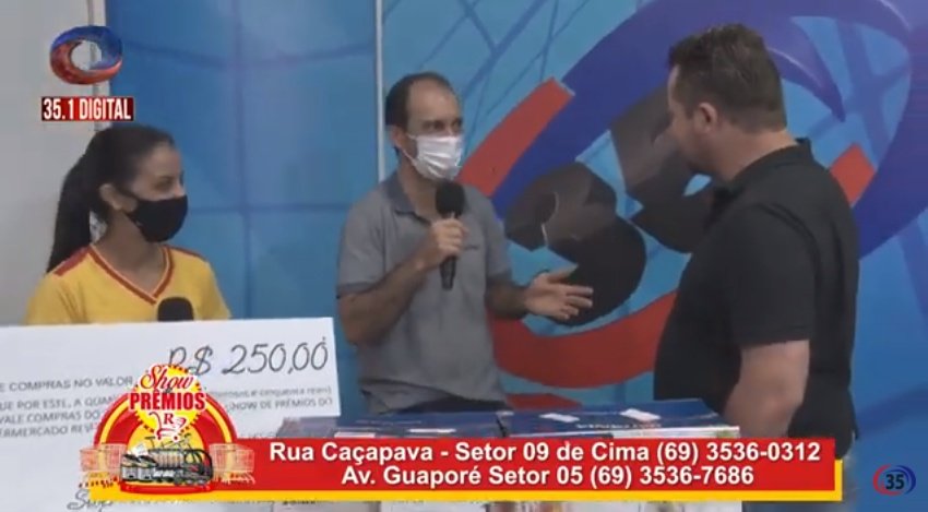 Na manhã desta sexta-feira, 24/12, foi realizado o quarto sorteio do mês de Dezembro da Promoção Show de Prêmios do Supermercado Revelação. O sorteio aconteceu no estúdio do Canal 35.1 e contou com a presença dos proprietários Claudiano e Queila, onde agradeceram os clientes e amigos. Venha para o Supermercado Revelação, que está localizado em dois endereços: na Rua Registro, Setor 09, nº 4970, em frente à Praça; e na Avenida Guaporé, Setor 05. O lugar certo para fazer economia! Confira o vídeo. Assista o sorteio.