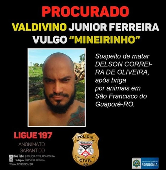 PROCURADO! PCRO pede ajuda para localizar foragido suspeito de matar vizinho após desentendimento por conta de animais em São Francisco do Guaporé