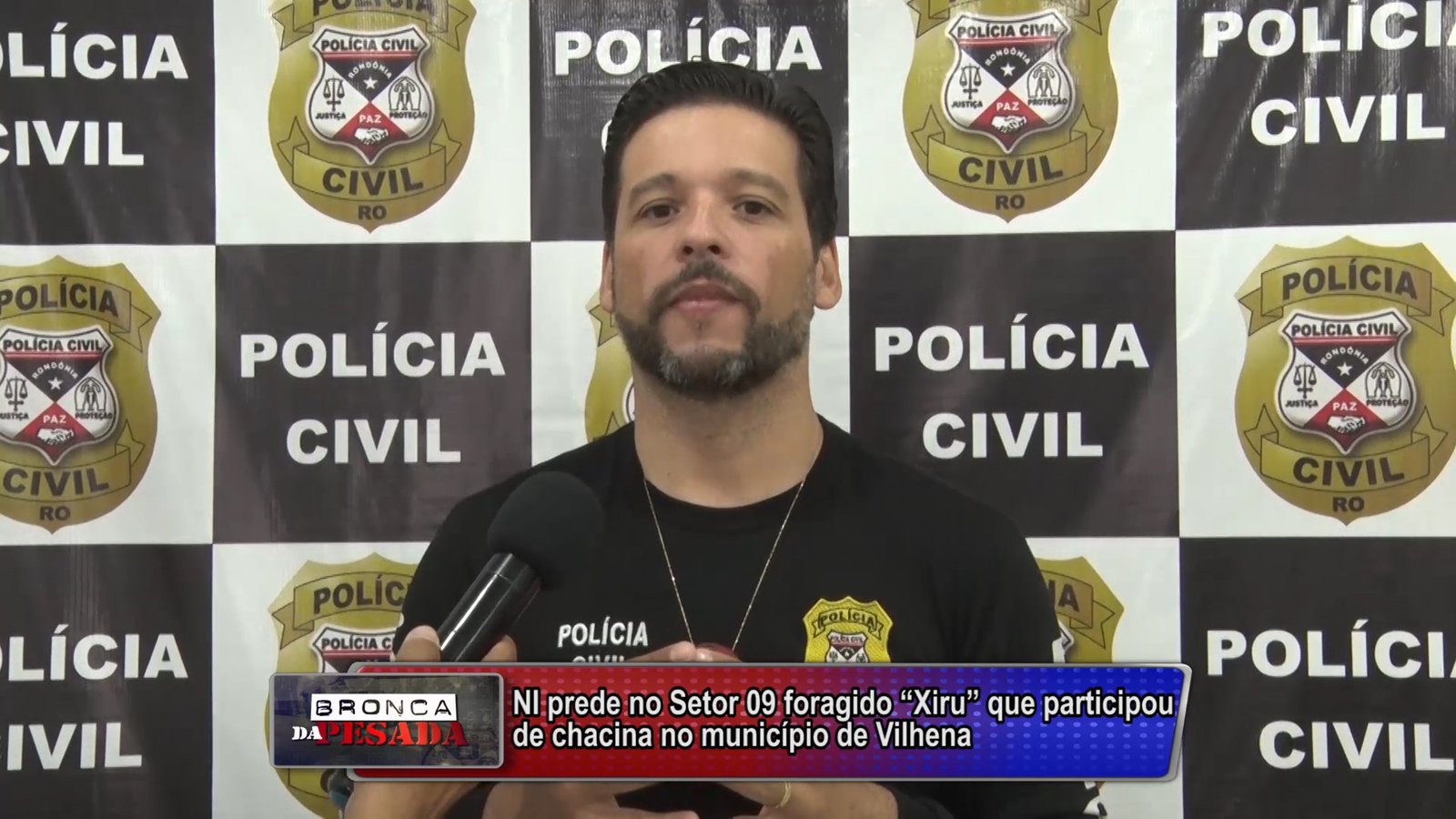 Dr. Rodrigo Camargo (Delegado Regional de Polícia Civil), concedeu entrevista ao Canal 35.1, onde falou da prisão de Marcelo Costa Vergilato, conhecido por “Xiru”, acusado de participar de chacina em fazenda de Vilhena, onde cinco pessoas foram assassinadas com requintes de crueldade no dia 13 de outubro de 2021. Xiru foi preso em uma ação conjunta da Polícia Militar (NI) e Polícia Civil no Setor 09, onde o suspeito estava escondido. Foram executados na chacina Heladio Cândido Senn, mais conhecido como “Nego Zen”, sua esposa Sônia Biavatti e mais três pessoas.