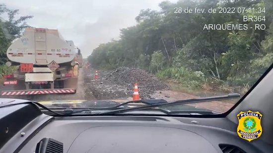 A Polícia Rodoviária Federal em Rondônia informa sobre as condições de trânsito na BR 364 Km 540 entre os municípios de Ariquemes e Itapuã do Oeste.