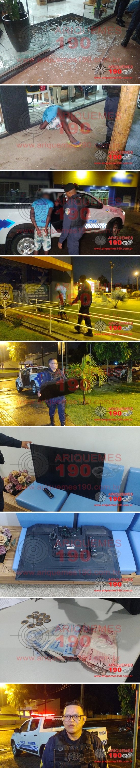 Um homem foi preso pela Polícia Militar de Rondônia (PMRO) na madrugada desta sexta-feira, 25, no momento em que ele estava furtando um estabelecimento comercial no município de Ariquemes. Uma televisão, um aparelho eletrônico conversor de tecnologia e dinheiro foram recuperados.