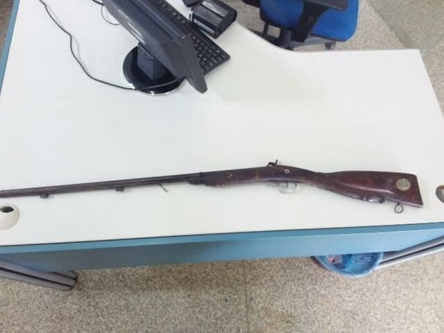 Bom Futuro – A equipe policial em Bom Futuro, distrito de Ariquemes, durante patrulhamento pela Linha C 75 desconfiou a atitude do motorista de um veículo que transportava um reboque com um barco de alumínio, e decidiu efetuar a abordagem. Na revista veicular, os policiais encontraram dentro de uma maleta de pesca, que estava em cima do barco, uma arma de fogo de fabricação artesanal do tipo garrucha calibre 36 e cinco munições do mesmo calibre. O homem, de 50 anos, assumiu a propriedade do armamento e disse que não possuía registro de posse ou porte da arma.