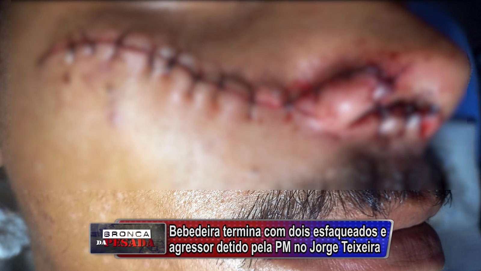 Uma briga entre amigos quase acaba em tragédia no Bairro Jardim Jorge Teixeira em Ariquemes. O Serviço de Atendimento Móvel de Urgência (SAMU) e Polícia Militar foram acionados a comparecerem no local, pois duas pessoas teriam sido esfaqueadas. Foi apurado que todos estavam bebendo, quando dois se desentenderam, um se armou com um facão e desferiu um golpe acertado o rosto do rapaz. A mulher saiu em defesa do marido ferido e desferiu um golpe com uma garrafa de cerveja no agressor. Furioso por ter levado uma garrafada, o homem acabou golpeando a mulher no braço com um facão. A PM prendeu o infrator, o qual foi apresentado na Unidade de Segurança Pública (UNISP) e as vítimas foram levadas para o Hospital Municipal de Ariquemes (HMA) onde foram atendidas pela equipe médica de plantão.