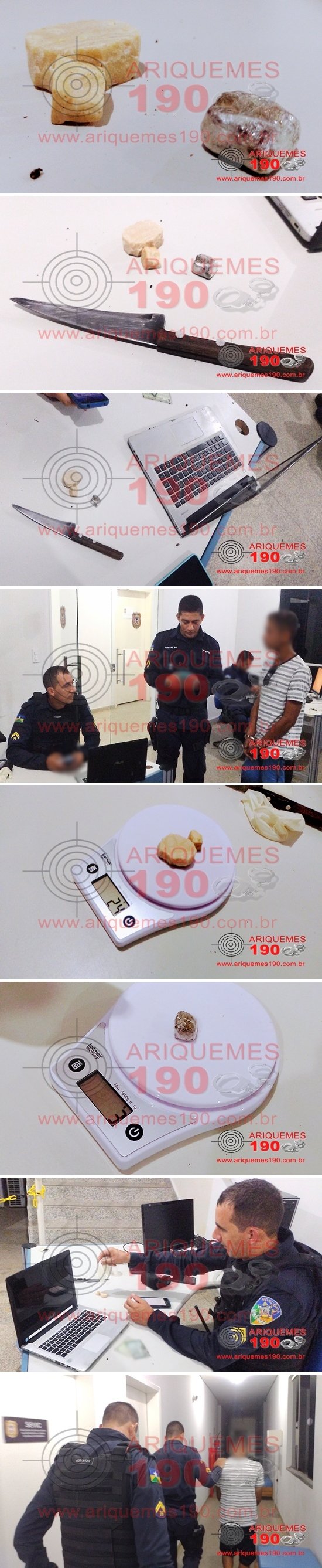 Em Ariquemes, durante o patrulhamento na madrugada desta quarta-feira, 06, a Polícia Militar de Rondônia desmontou o esquema de um homem, de 21 anos, suspeito de tráfico de drogas. A ação apreendeu drogas semelhante à maconha e ao crack, e recuperou um notebook.
